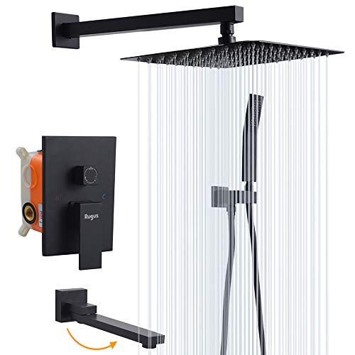 🔥 Hot Deals Rugus Shower System,Luxury Rain Mixer Shower Tub Spout Combo Set Wall Mounted Rainfall Shower Head System,12 Inch Square Rain Shower Head,Black Shower faucet rough-in valve body and trim Simple review